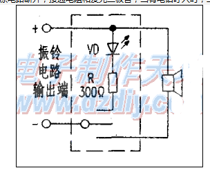 制作方法首先找出振鈴輸出端的正負(fù)極,可用電阻串聯(lián)發(fā)光二極管在電話振鈴時試測。