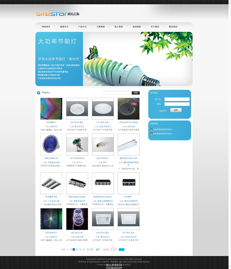模板編號:     S1313 各種照明燈具燈式用品家用照明建站模板