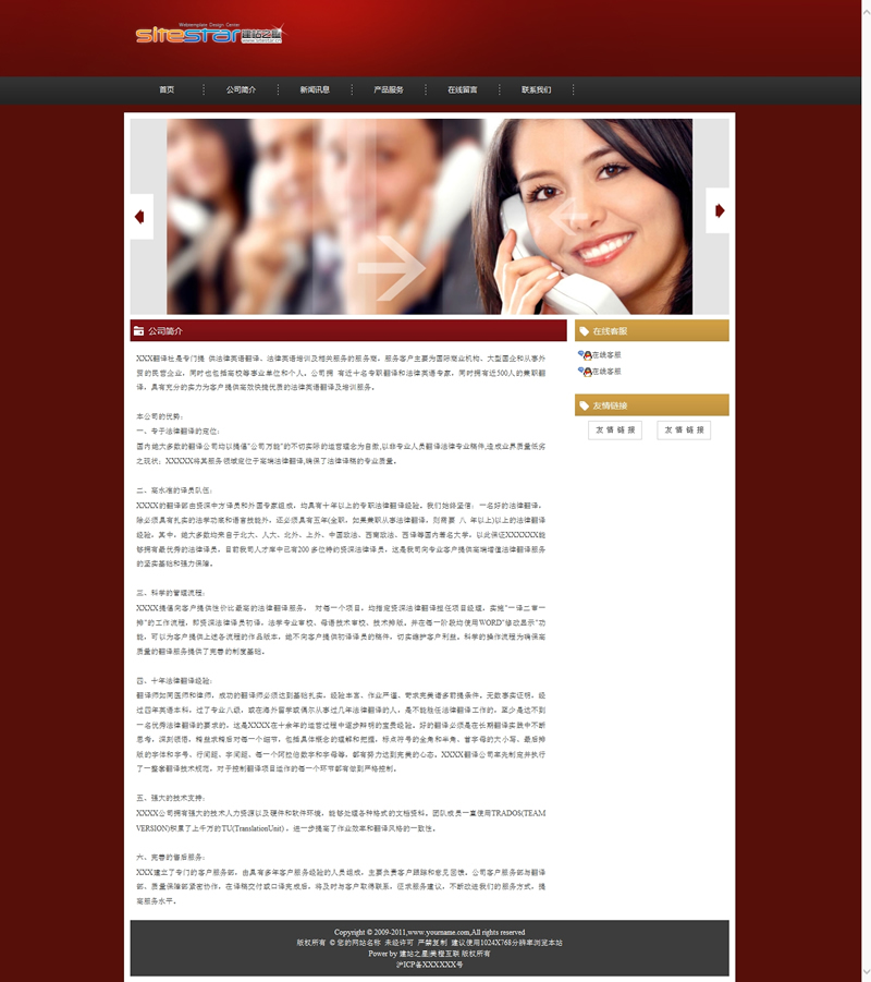 二、本模板可免費提供給廣大建站愛好者學習使用,但不提供任何形式的咨詢解答服務。為了尊重本公司的設計成果,請使用模板時添加本站網址為友情鏈接,否則本站將追究其版權使用的權限。