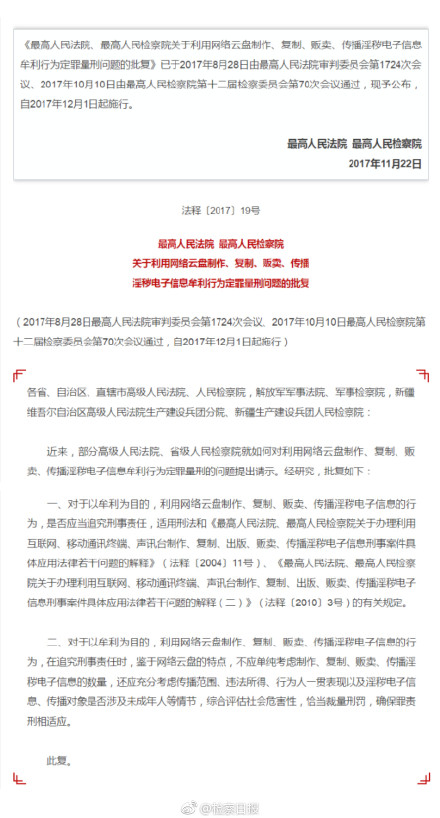 昨天,最高人民法院、最高人民檢察院批復(fù)網(wǎng)絡(luò)云盤“涉黃”定罪量刑:不該單純考慮信息數(shù)量,要綜合評(píng)估社會(huì)危害性,,恰當(dāng)裁量刑罰,確保罪責(zé)刑相適應(yīng)。