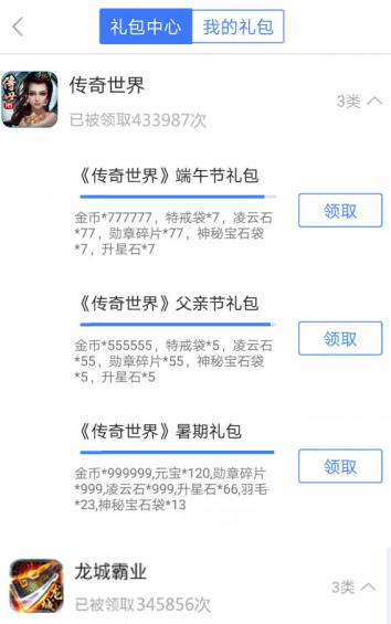 還有獨特的禮包中心功能,玩家在玩某些游戲時,不會再有繁瑣的領取獎勵過程——根本不需要去游戲里領取獎勵,直接打開禮包中心,哪個游戲在舉行活動,哪個游戲有獎勵領取,一目了然,動動手指,就可以輕松領取,