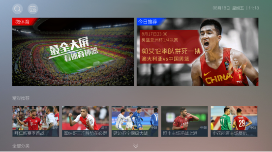 近幾年,隨著精品體育賽事引領,以及智能電視的普及,用大屏不雅觀看便捷的體育賽事直播也成為更多人的選擇。隨著17-18賽季歐洲五大聯賽的全面開戰,微視聽作為智能電視老牌視頻APP,通過和剛剛集齊歐洲足球五大聯賽賽事直播版權的PPTV戰略合作,以及與騰訊的長期不變的合作關系,讓用戶只需要在智能電視端下載CIBN微視聽,即可一步到位盡享各類大屏精彩賽事。