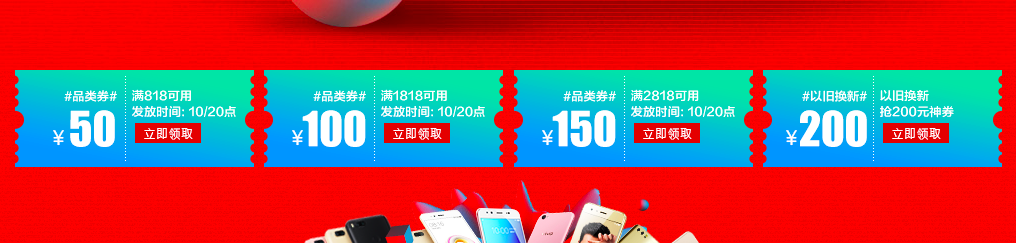 A9 五折促銷低至 818 元限量秒殺,諾基亞領券立減100、三星、華為、魅族爆品直降,,最高直降 200 元; 18 點,華為暢享 6 低至 5 折,耀暢玩V8、LG