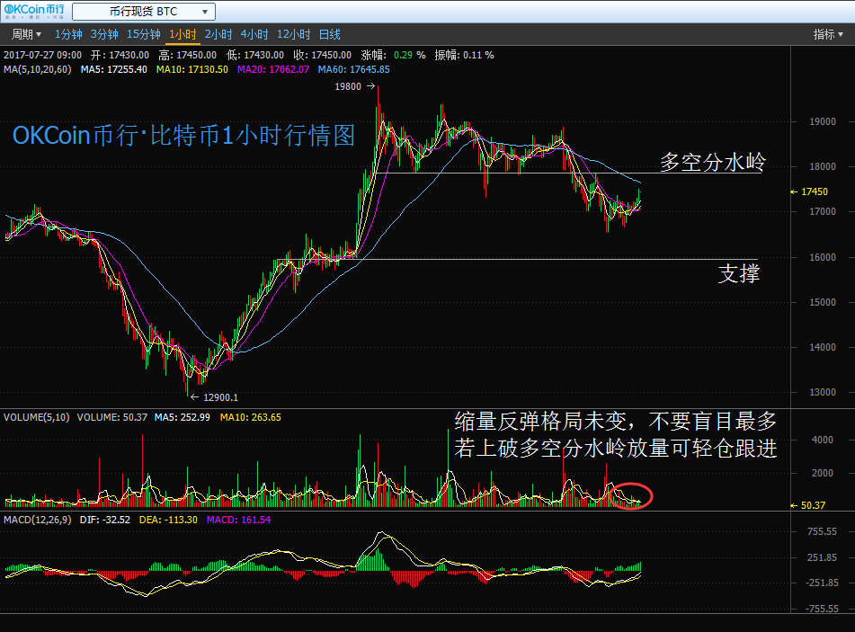 按照國內(nèi)知名的數(shù)字資產(chǎn)交易平臺(tái)OKCoin幣行的數(shù)據(jù)顯示,比特幣昨天( 7 月 26 日)價(jià)格在開市后繼續(xù)慣性下跌,全天呈震蕩下行狀態(tài)運(yùn)行,最低觸及 16523 一線低位,隨后觸底反彈,收市。截止今日發(fā)稿前,價(jià)格依舊在延續(xù)反彈,最新交投于 17380 附近。