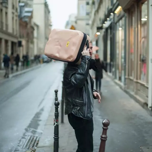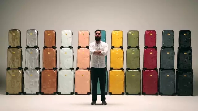 從小腦回路就差別的他,沒有采用慣常的設計理念,而是沒事就拿個行李箱摔,還邀來伴侶一起摔。