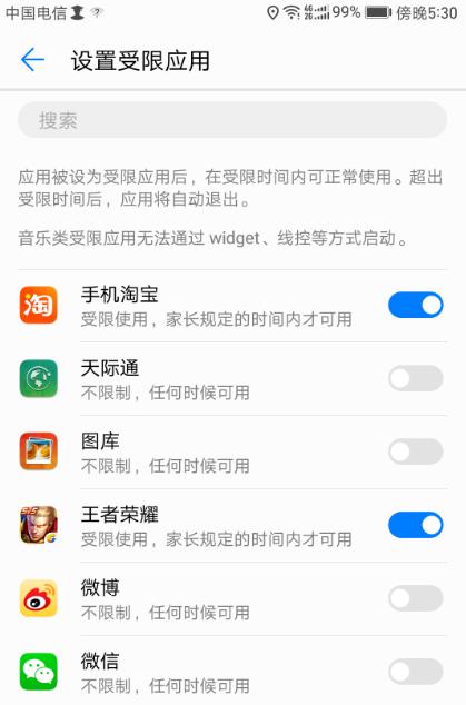 9 桌面點擊設置,然后進入高級設置,即可開啟學生模式。在學生模式下,可以設定各種應用的使用權限以及實用時間。以目前市面上最流行的手游《王者榮耀》為例,為防止孩子沉溺游戲,家長就可以為這款游戲設置啟動密碼,沒有家長的密碼應用將無法開啟。別的,家長也可以按照孩子的休息情況、作業的多少來設定游戲時間,讓孩子勞逸結合,既享受到了游戲的快樂,也沒耽誤到功課。