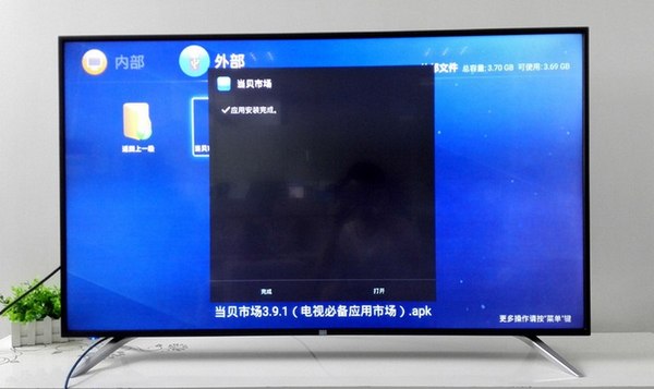 3、將U盤插到看尚電視的USB接口,打開電視應(yīng)用里的文件辦理器——外部設(shè)備,就可以找到U盤里的安置包,點(diǎn)擊確認(rèn)安置就成功了;