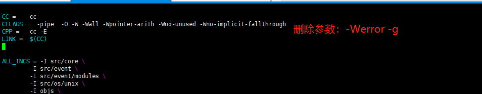 編輯文件 nginx 根目錄:objs/Makefile