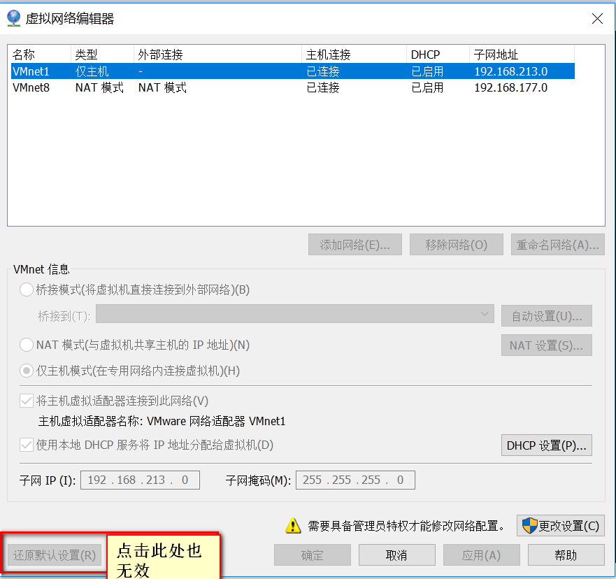 1.5 還原默認設置,重新安裝虛擬網卡也無效