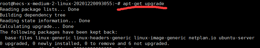 在布置好云服務器后,我們使用apt-get update, apt-get upgrade 更新信息。