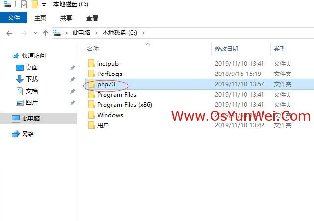 重命名文件夾為php73,把php73文件夾拷貝到C盤根目錄