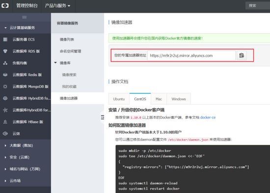 我們可以借助阿里云的鏡像加速器,登錄阿里云(https://cr.console.aliyun.com/#/accelerator )