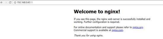 訪問http://Docker宿主機 IP:91/,將會看到nginx的主界面如下: