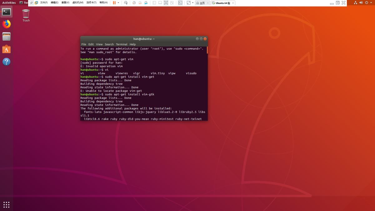 1、ubuntu系統:普通用戶下輸入命令:sudo apt-get install vim-gtk (注:出現E: Unable to locate package則將命令改成sudo apt-get install vim-nox)