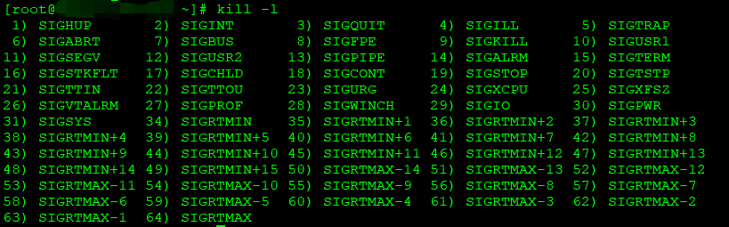 進(jìn)程A需要進(jìn)程B做點(diǎn)事,而進(jìn)程間的內(nèi)存區(qū)域某種意義上說(shuō)是互不可見(jiàn)的。這個(gè)時(shí)候就需要通過(guò)信號(hào)量來(lái)完成。進(jìn)程A可以按照預(yù)先定義的信號(hào)量規(guī)范向進(jìn)程B發(fā)出信號(hào)量,當(dāng)進(jìn)程B收到后,根據(jù)具體信號(hào)量的值決定處理邏輯。具體信號(hào)量清單,可以在命令行通過(guò)如下命令查詢。命令中均為字母,沒(méi)有數(shù)字1。