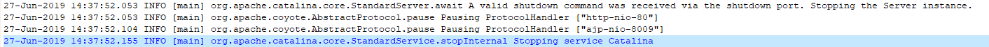 當(dāng)tomcat收到正經(jīng)的關(guān)閉指令時(shí),會(huì)輸出此日志,說(shuō)明是收到指令關(guān)閉容器。