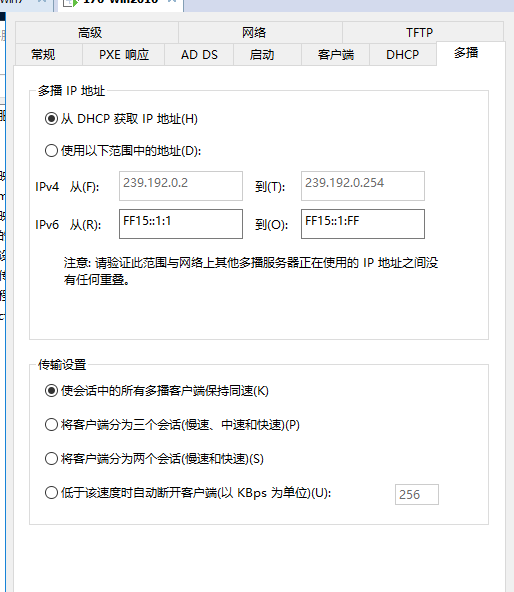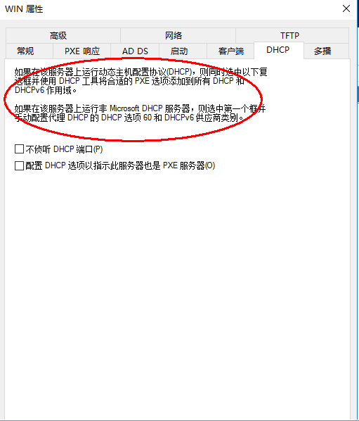右擊【W(wǎng)indows部署服務(wù)器】在彈出的對(duì)話框中單擊【屬性】按鈕;按照下圖分別設(shè)置服務(wù)器的啟動(dòng)項(xiàng)、DHCP、多播等參數(shù)。