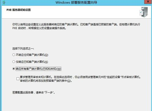 1. 選擇【獨(dú)立服務(wù)】以及【響應(yīng)所有客戶端計(jì)算機(jī)】完成Windows部署服務(wù)的配置。
