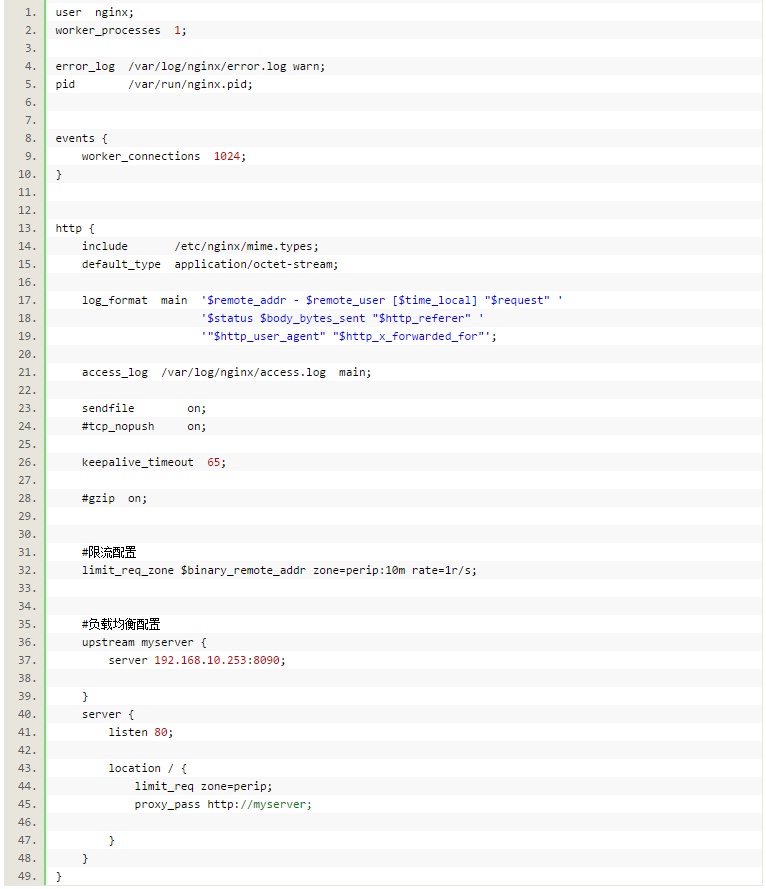 如上, nginx 的限流配置 , 只有兩行代碼.
