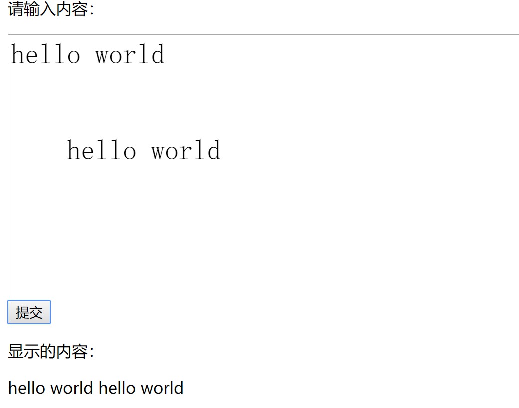 那么如果你需要 textarea 編輯提交的文字,從后臺返回之后,不是顯示在 textarea 里面,那么就需要考慮處理空格和換行啦。