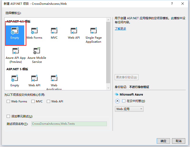 再創(chuàng)建一個(gè)空的Web Api項(xiàng)目,命名為:CrossDomainAccess.WebAPI