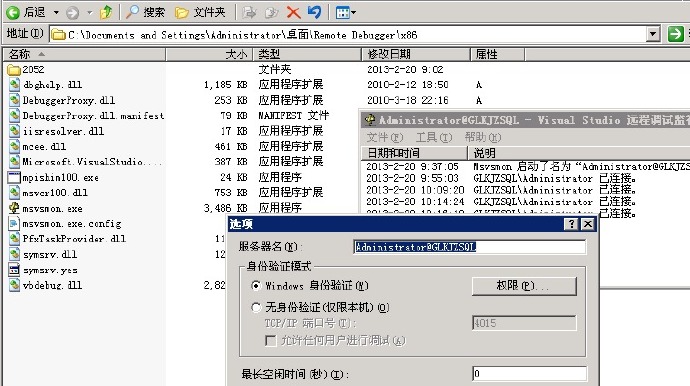 運行mvsmon.exe,設置工具-選項為Windows身份驗證,否則斷點會不起作用