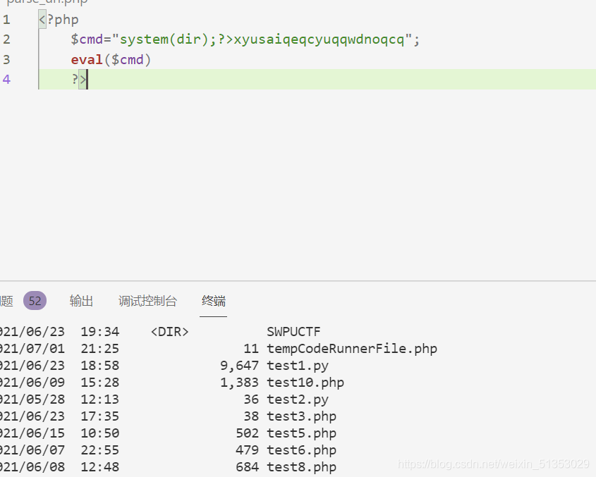 eval()這個函數(shù)可以理解成我們是將eval(字符串)這里面的字符串放到了一個新的php里面去運行,這個新的php本來就又 ?php 所以當我們傳入 system(dir);?>dasdas的時候,?>就以及階段了php代碼