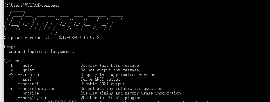 這個時候關掉控制臺 ,輸入 composer ,就可以看到下面的效果,這時候就安裝好了