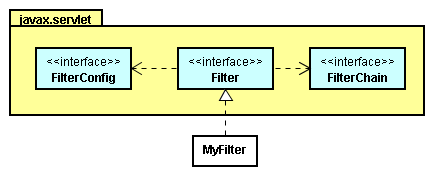 Filter是個接口,位于 javax.servlet.Filter。它與其他接口的關系如下: