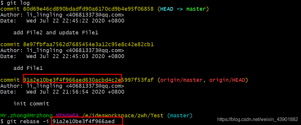 【場景】代碼和遠程倉庫一致,本地修改后存在多次本地commit,本地多次提交的代碼沒有沖突,rebase合并本地多次commit