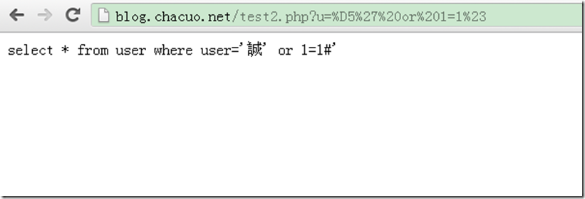 以上是我們寫的一個測試例子(GBK編碼),現在很多開源系統,比較少的進行統一參數過濾,有時候為了防止注入,就直接對參數進行轉義處理。我們看看,這樣一個例子,我們怎么樣注入進系統!