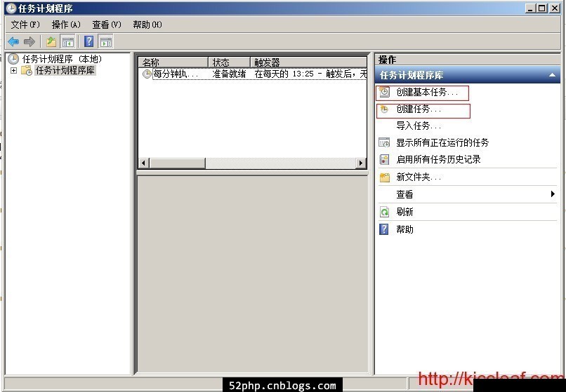 1、打開“任務計劃程序”–> 點擊“任務計劃程序庫”在右則會看到操作項里有“創建基本任務”和“創建任務”如圖所示: