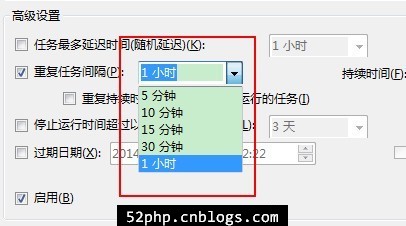 特別說明:我差點被騙了,認為Windows計劃任務是精確不到分鐘級別的,主要是看到“重復時間間隔(P)”右邊沒有“1分鐘”選項,如下圖所示: