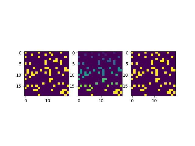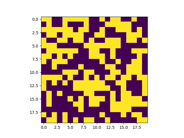 這里我們以Python3為例,可以用Numpy來產(chǎn)生一系列隨機(jī)的0-1矩陣,這里我們產(chǎn)生一個(gè)20*20大小的矩陣: