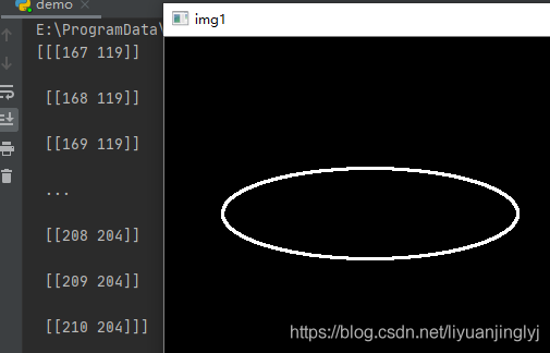 運行之后,我們會得到輪廓點位置: