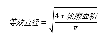 在OpenCV中,我們還可以使用等效直徑來衡量輪廓的特征值,該值是與輪廓面積相等的圓形的直徑。其數學計算公式為:
