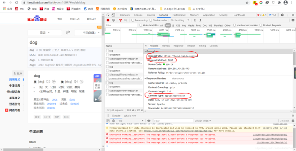 (注意:我們發(fā)現(xiàn)其中有三個 sug ,我選的只是其中一個。如果我們?nèi)紟c開看,就會發(fā)現(xiàn),他們的 kw 分別是:d 和 do。這是因為我打 dog 時一個單詞一個單詞打的,而 AJAX 是時時刷新。如果輸入中文就不會出現(xiàn)這種情況。翻譯中文時,我們找的也不是 sug 了,具體是什么,就看哪個包的 data 的值是我們要翻譯的詞。)