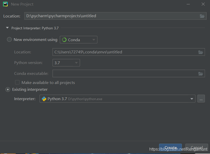 勾選下面的Existing interpreter 點擊后面的…