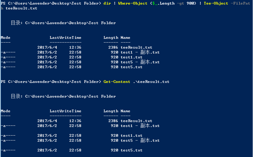 使用Tee-Object(別名是tee)命令可以將命令輸出結果保存在文件或者變量中,同時將其顯示在控制臺中。