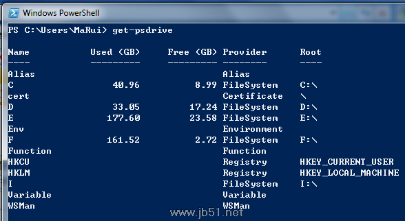 可以通過PowerShell中的PSDriver來獲取當前驅動器列表,基本上所有的Provider都有一個唯一的PSDriver,但是文件系統和注冊表卻是個例外,通過下面的命令查看: