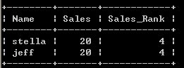 WHERE a1.Sales a2.Sales or (a1.Sales=a2.Sales and a1.Name = a2.Name)