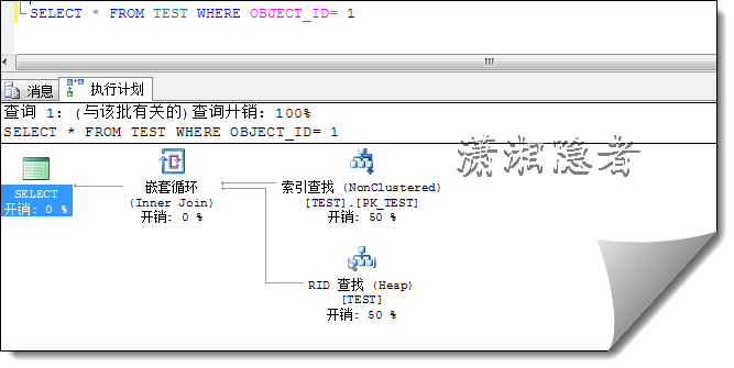如上所示,當我們查詢OBJECT_ID=1的數據時,優化器使用索引查找(Index Seek)