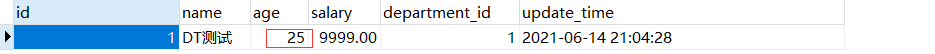 我們任然插入ID=1的員工記錄,并且修改一下其他字段(age=25):
