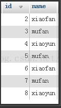 select id,name from user group by name;