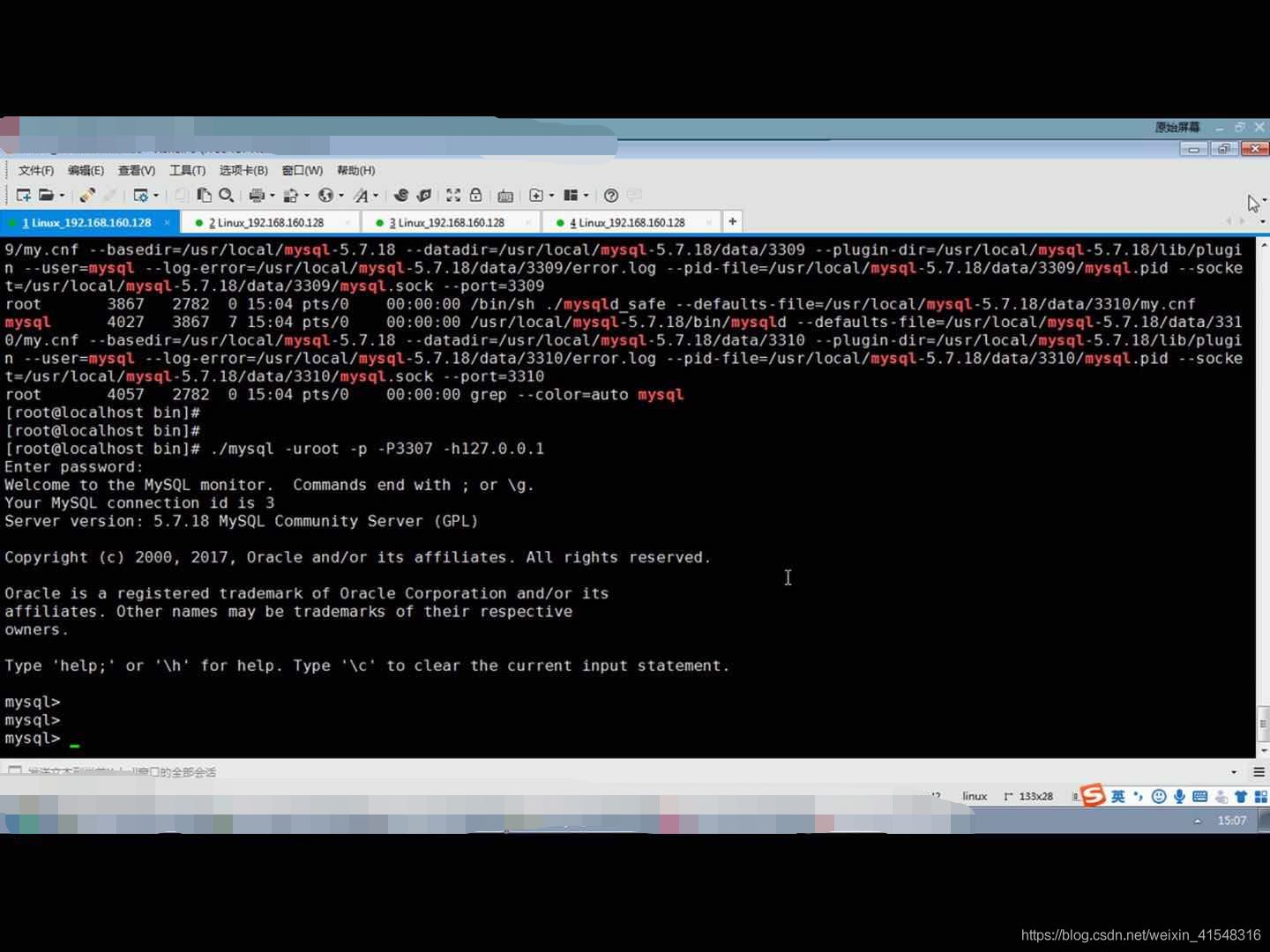 ./mysql -uroot -p -P3307 -h127.0.0.1 #注意在/usr/loacl/mysql-5.7.18/bin下執行