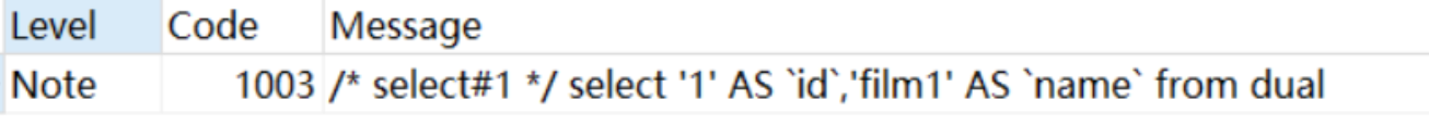 以得到優化后的查詢語句,從而看出優化器優化了什么。額外還有 filtered 列,是一個半分比的值,rows * filtered/100 可以估算出將要和 explain 中前一個表進行連接的行數(前一個表指 explain 中的id值比當前表id值小的 表)。