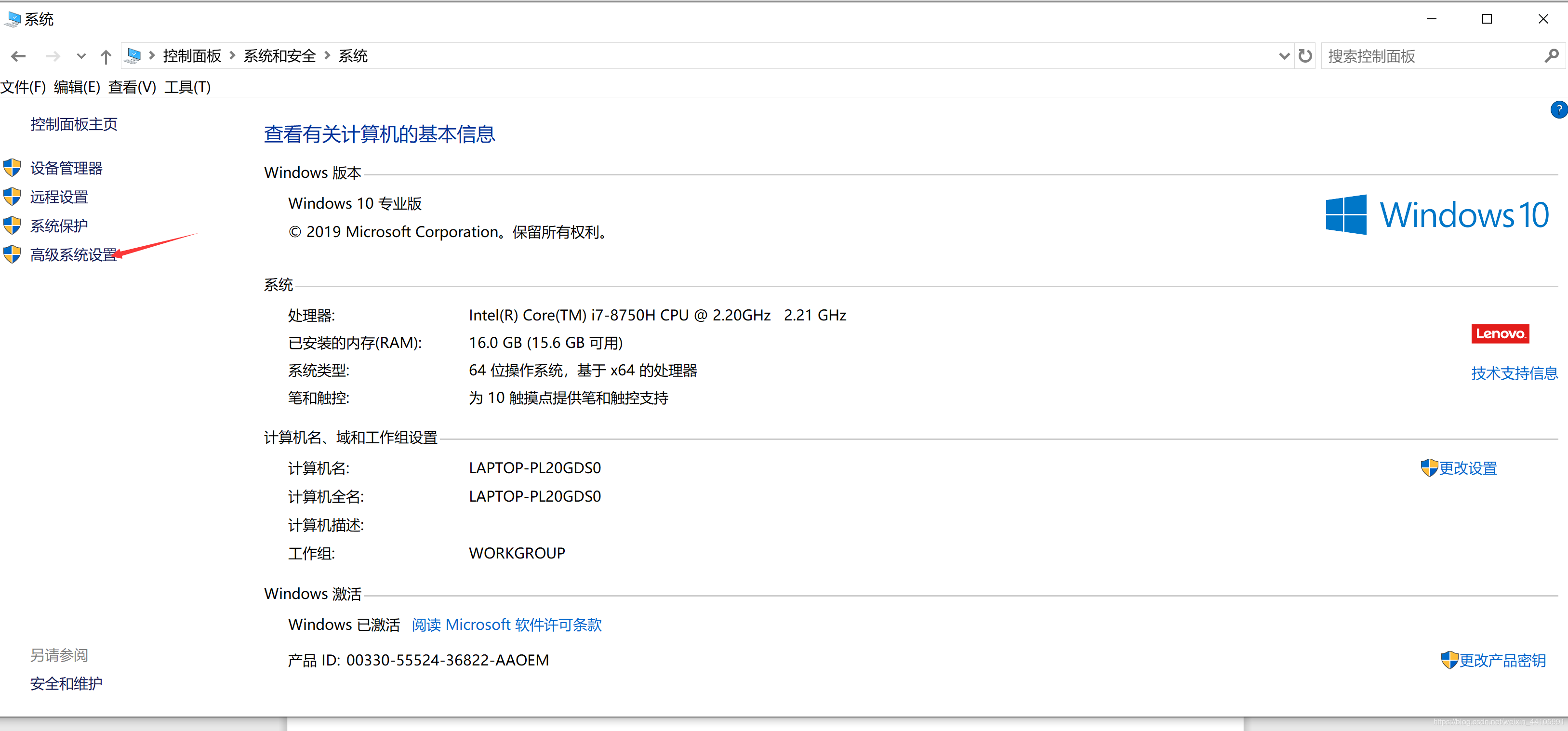 3.2點擊‘系統'之后,點擊‘高級系統設置'