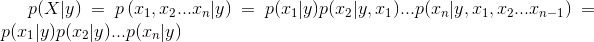 生成式模型的難點在于如何去估計類概率密度分布p(x|y)。本文采用的樸素貝葉斯模型,其"Naive"在對類概率密度函數簡化上,它假設了條件獨立: