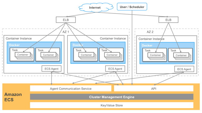 在ECS發展過程中,亞馬遜優先發展在同一個集群中,針對基于用戶需求的任務自動伸縮冗余性,本地跨越可用區域(AZs)的能力,當ECS服務調度啟動新的任務時,它也會嘗試通過集群中的AZs自動平衡這些任務。