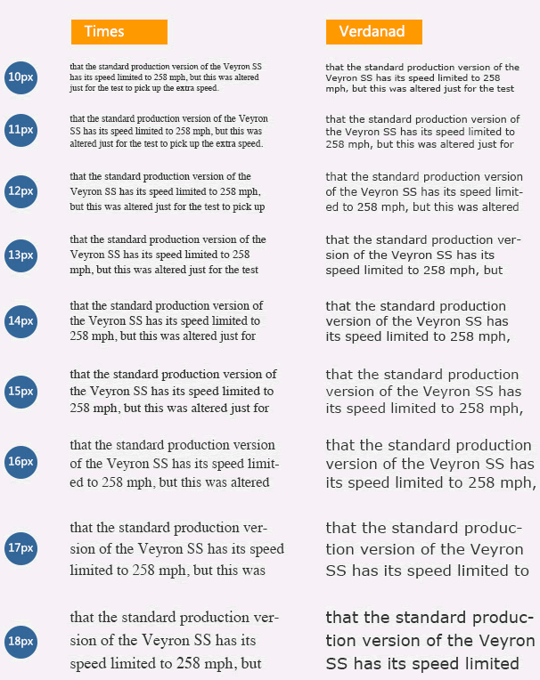 很長(zhǎng)一段時(shí)間里,在互聯(lián)網(wǎng)上我們會(huì)注意這樣的一個(gè)現(xiàn)象,國(guó)外網(wǎng)站大部分以非襯線體為主,而中文網(wǎng)站基本就是宋體。其實(shí)不難理解,襯線字體筆畫有粗細(xì)之分,很小字的情況下細(xì)筆畫就被弱化,受限于電腦的分辨率,10-12px的襯線字體在顯示器上是相當(dāng)難辨認(rèn)的(見下圖);同字號(hào)的非襯線體筆畫簡(jiǎn)潔而飽滿,更適于做網(wǎng)頁(yè)字體。windows下,中文宋體小字點(diǎn)陣的特性,12px、14px的字號(hào)顯示仍然相當(dāng)清晰美觀,便于閱讀。這也就是為什么大多網(wǎng)頁(yè)設(shè)計(jì)制作人員容易機(jī)械性的選用特定字號(hào)或英文或中文的字體。